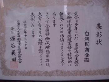 白河民商は、加入者が多い、増えているとして全国労働保険事務組合連合会から表彰を受けています。 | ||||||||||||||||||||||||||||||||||||||