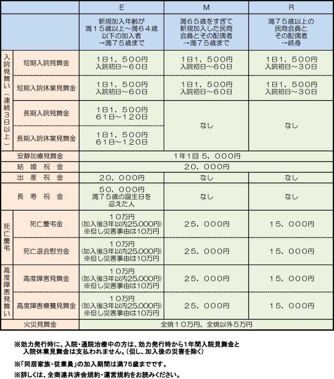 下記の見舞金・祝金・弔慰金が支給されます。 |